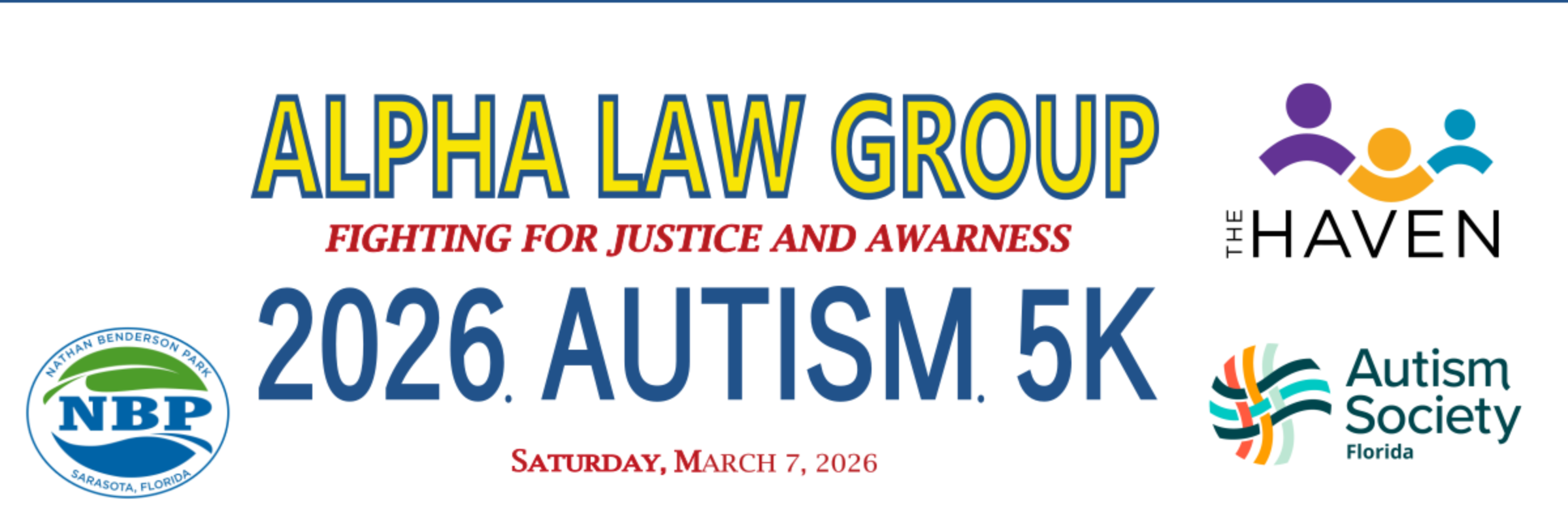 “The Alpha Law Group Autism 5K at Nathan Benderson Park—free, family-friendly, and built for inclusion.”